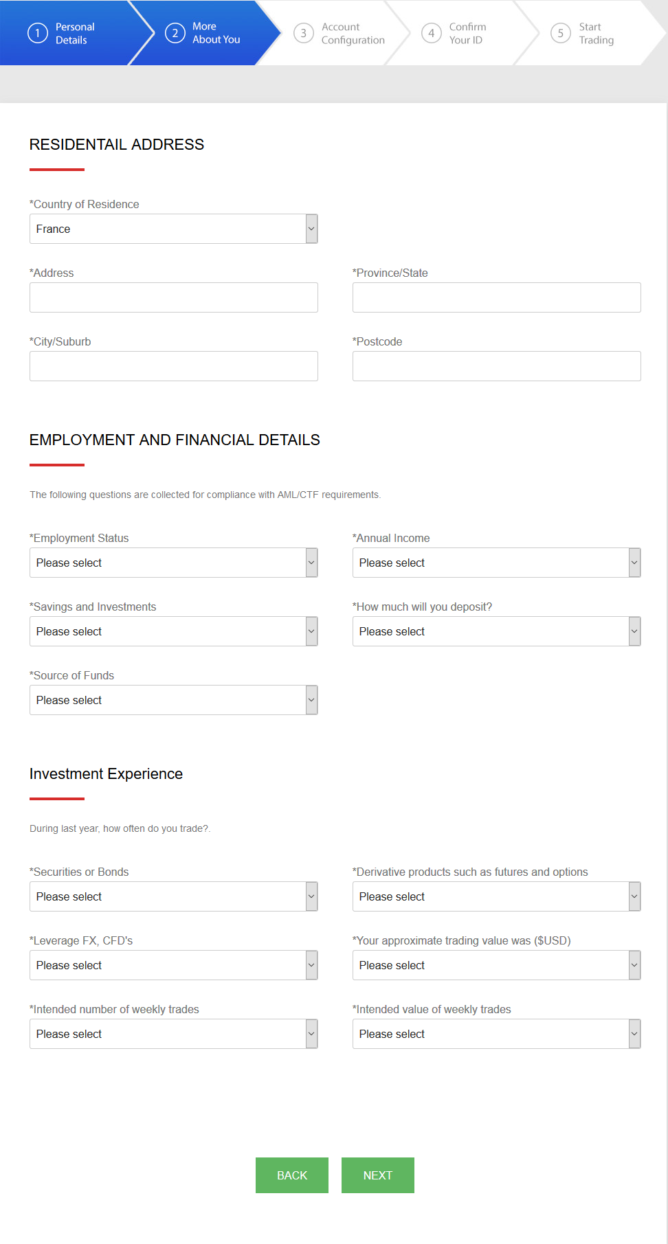 Une fois que l’argent sera sur votre compte, connectez-vous sur votre portail client et assurez-vous que votre effet de levier (leverage) soit à 500:1. Si ce n’est pas le cas, cliquez sur la petite roue à côté et modifiez-le.